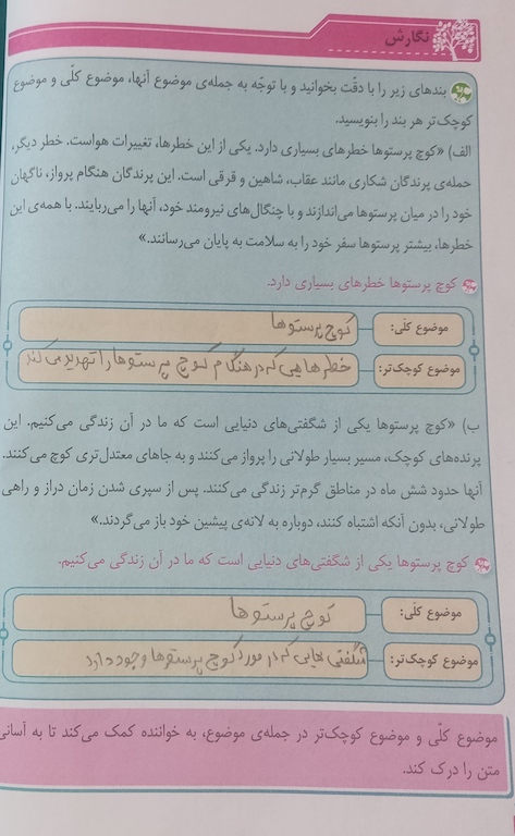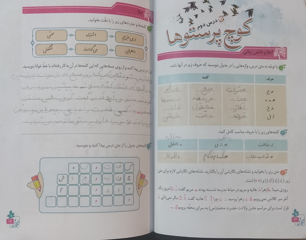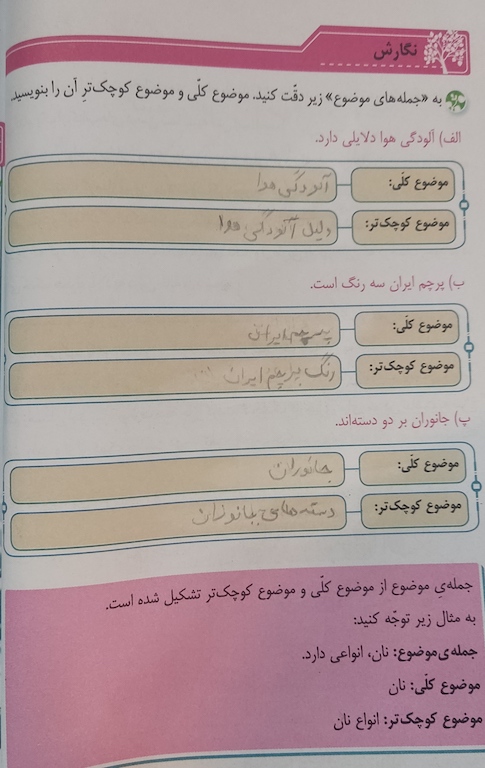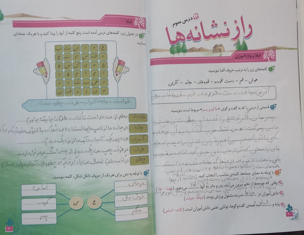 - ادامه درس سوم نگارش چهارم ابتدایی تکالیف روزانه