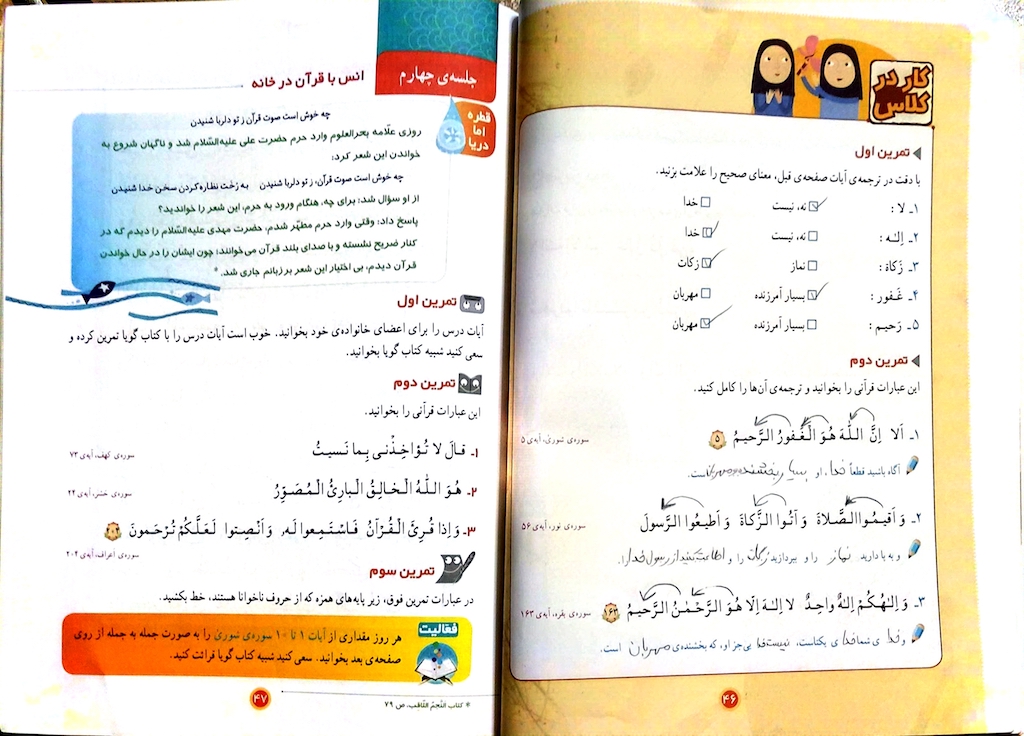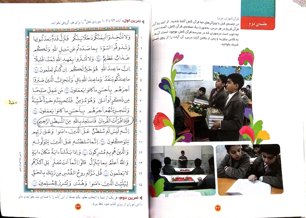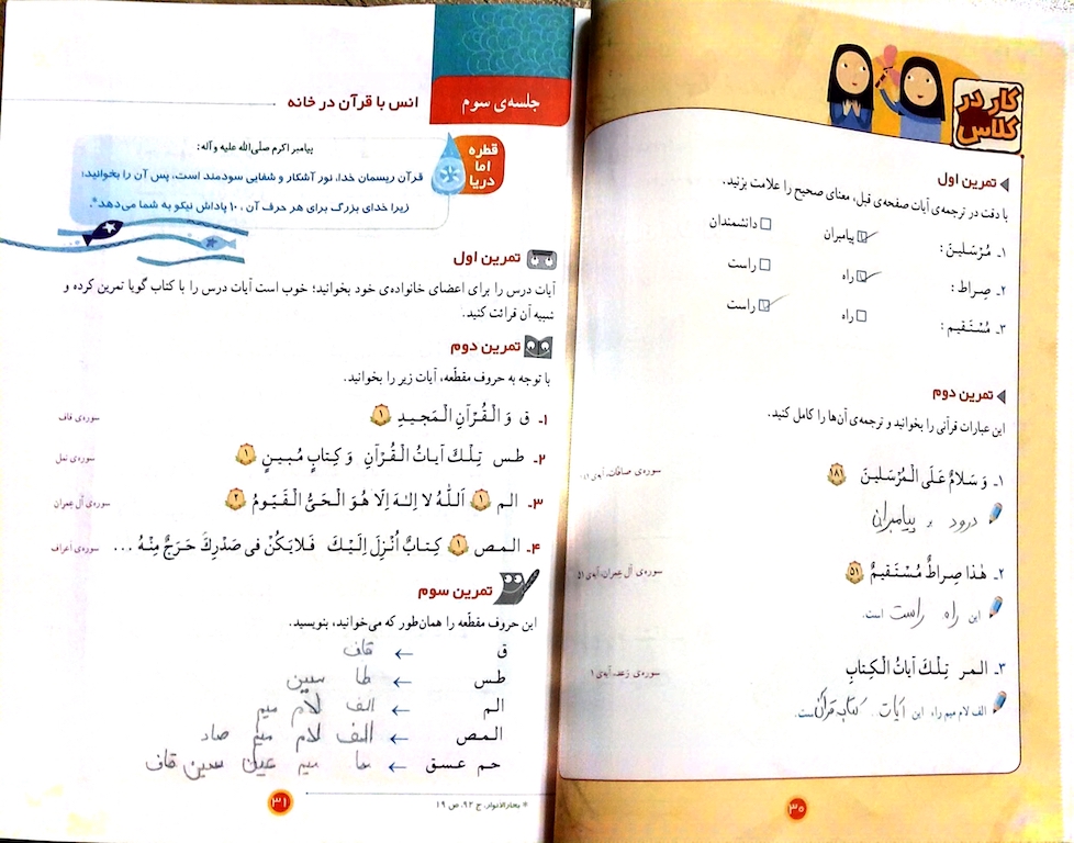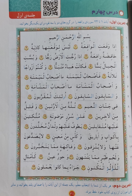 - درس دوم قران چهارم ابتدایی دستخط احمدرضا تقوی کیا3آبان۱۴۰۱ تمرینات حل شده