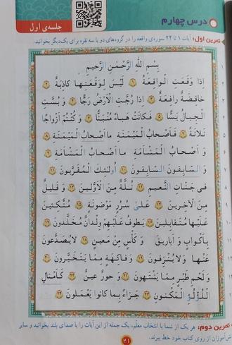 - درس دوم قران چهارم ابتدایی دستخط احمدرضا تقوی کیا3آبان۱۴۰۱ تمرینات حل شده