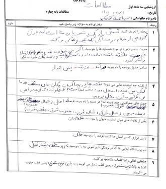 - نمونه خودازمایی بدون پاسخ ۴ ابتدایی